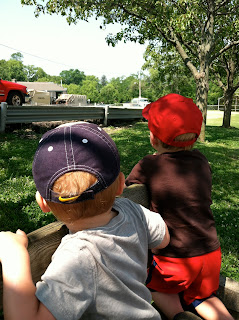 Today was Tuesday with Grammy again and we opted for something new. We've never been to Glenwood Gardens or the Highfield Discovery Gardens (which is within Glenwood Gardens). It's a Hamilton County Park and I bet a well kept secret. From what I could see, the trails and the park looked very nice. We explored the Discovery Gardens, which has all kinds of fun things for kids to do. The boys enjoyed watching the trains and watering the flowers. They also enjoyed playing in the big tree. The weather couldn't have been better and we really enjoyed our time at the gardens.